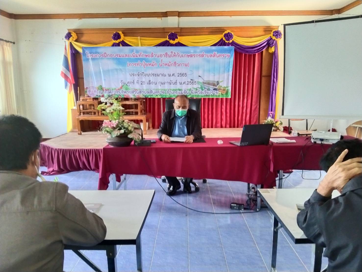 โครงการฝึกอบรมและเพิ่มทักษะด้านอาชีพให้กับเกษตรกรตำบลสันทราย (การทำปุ๋ยหมัก น้ำหมักชีวภาพ) ประจำปีงบประมาณ พ.ศ.2565 องค์การบริหารส่วนตำบลสันทราย ได้ดำเนินโครงการในวันที่ 25 กุมภาพันธ์ 2565 ซึ่งโครงการนี้จัดทำขึ้นเพื่อให้เกษตรกรมีความรู้ความเข้าใจในการผลิตและการใช้สารอินทรีย์อย่างมีประสิทธิภาพในการลดการใช้ปุ๋ยเคมี และเพื่อให้กลุ่มเกษตรกรมีความเข้มแข็ง สามารถพึ่งพาตนเองได้ในการพัฒนาการเกษตร แบบยั่งยืน เพื่อพัฒนาเป็นกลุ่มเกษตรอินทรีย์ในอนาคต