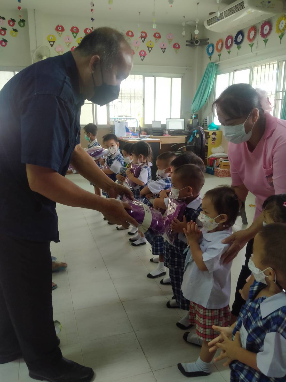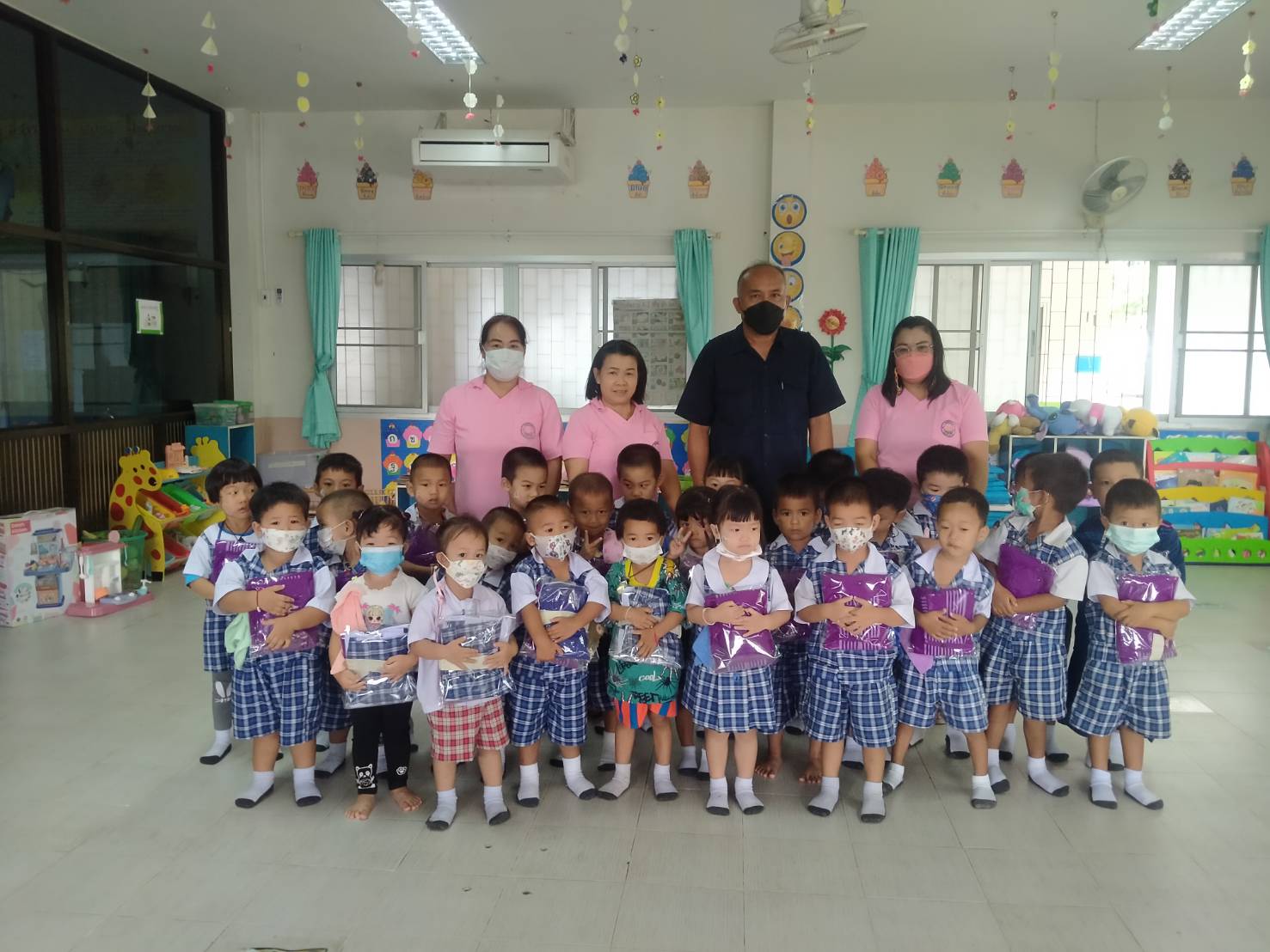 มอบหมวกนิรภัยให้แก่เด็กนักเรียนระดับปฐมวัย ตามโครงการครอบครัวสุขสันต์ ใส่หมวกกันน๊อคกันทุกคน