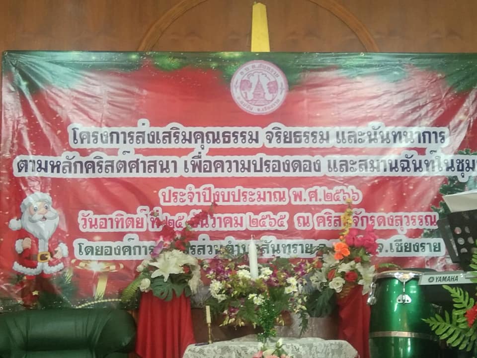 โครงการส่งเสริมคุณธรรม จริยธรรมและนันทนาการ ตามหลักคริสตศาสนาเพื่อความปรองดอง สมานฉันท์ ในวันที่ 25 ธันวาคม 2565 ณ คริสตจักรดงสุวรรณ หมู่ที่ 5 บ้านดงสุวรรณ ต.สันทราย