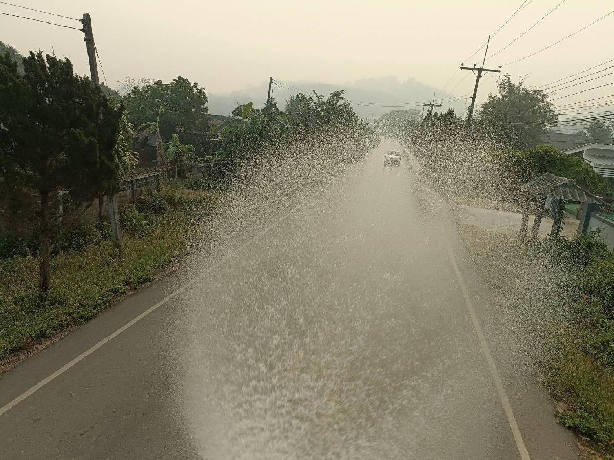 สำรวจพื้นที่น้ำไหลหลากและวางกรวยจราจร หมู่ที่ 2 บ้านจอมจันทร์