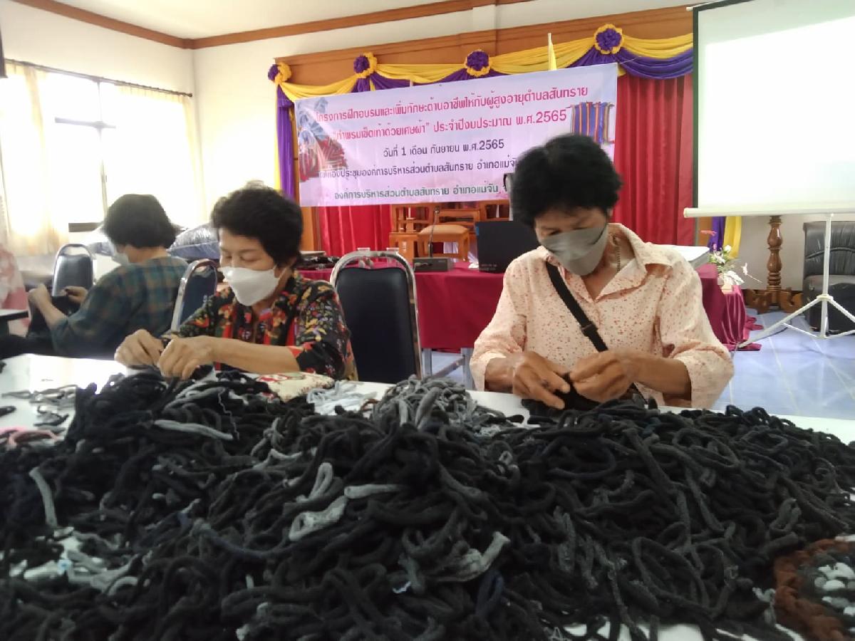 โครงการฝึกอบรมและเพิ่มทักษะด้านอาชีพให้กับผู้สูงอายุตำบลสันทราย “ทำพรมเช็ดเท้าด้วยเศษผ้า” ประจำปีงบประมาณ พ.ศ. 2565