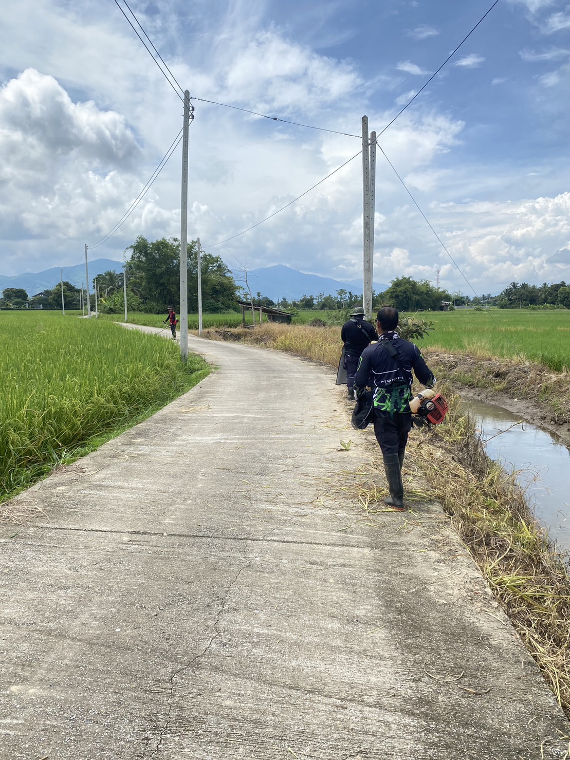 ตัดเเต่งกิ่งไม้ที่ปิดบังภูมิทัศน์ทางจราจร บริเวณทางขึ้นวัดพระธาตุจอมจันทร์ หมู่ที่ 2 บ้านจอมจันทร์