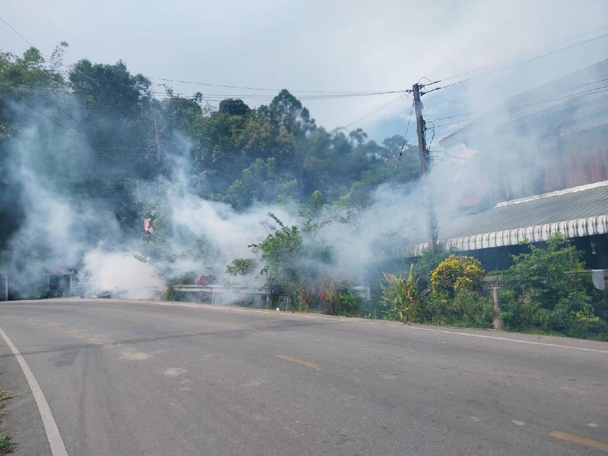 วันจันทร์ ที่ 6 พฤศจิกายน 2566 ด้วยทางโรงพยาบาลส่งเสริมสุขภาพตำบลสันทรายได้ขอความอนุเคราะห์พ่นหมอกควันควบคุมโรคไข้เลือดออกรายใหม่ หมู่ที่ 3 ผู้ป่วยชาย 1 ราย ศูนย์ EOC อบต.สันทราย ร่วมกับ อสม. หมู่ที่ 3 บ้านดอยต่อ ได้ดำเนินการควบคุมและเฝ้าระวังโรคไข้เลือดออก ครั้งที่ 1 โดยการสอบสวนโรคเพื่อหาแหล่งรังโรค สำรวจและกำจัดลูกน้ำยุงลาย ใส่ทรายเทมีฟอส และพ่นหมอกควัน ในรัศมี 100 เมตร รอบที่พักผู้ป่วย