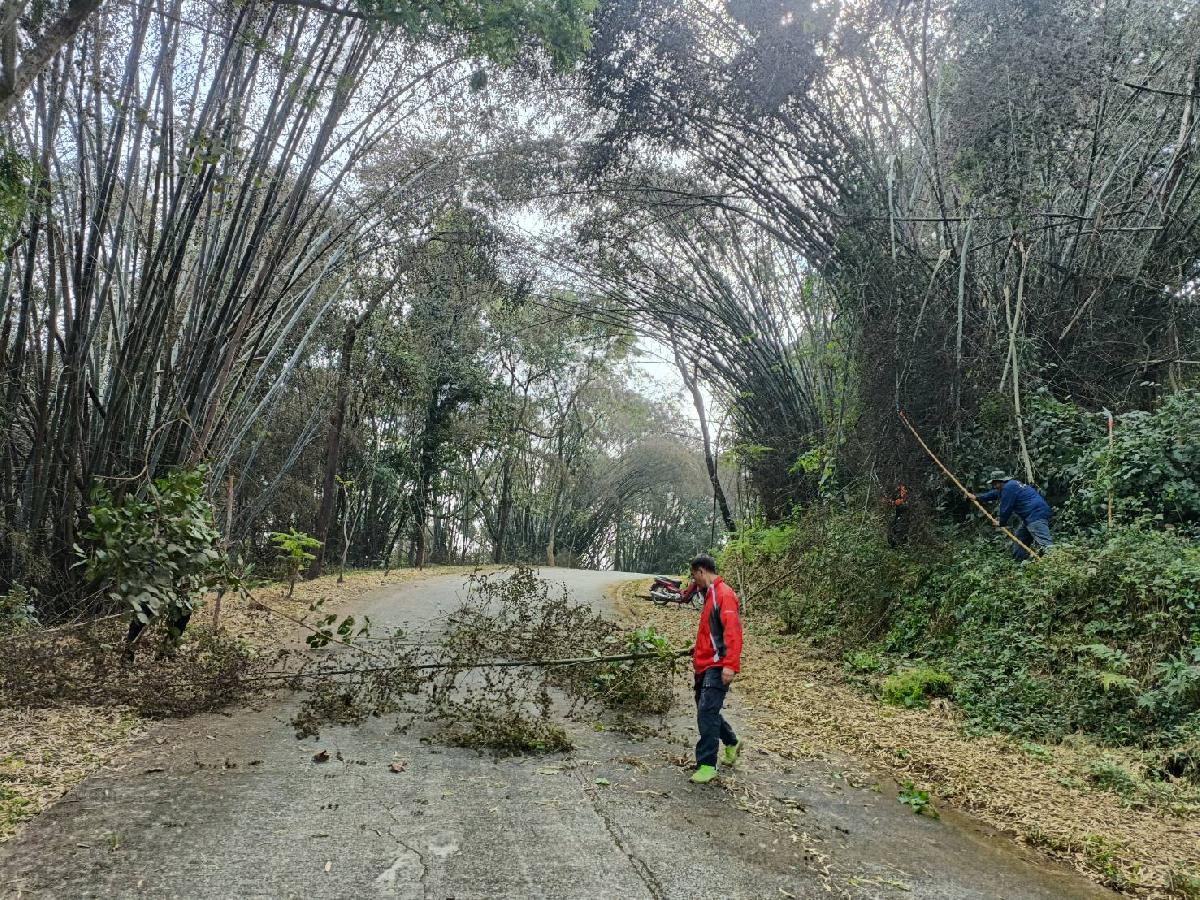 องค์การบริหารส่วนตำบลสันทราย ได้มอบหมายให้งานป้องกันฯ พร้อมเจ้าหน้าที่ อบต.สันทราย จำนวน 5 นาย ออกปฏิบัติหน้าที่ตัดเเต่งกิ่งไม้ที่ปิดบังภูมิทัศน์ทางจราจร บริเวณทางขึ้นวัดพระธาตุจอมจันทร์ หมู่ที่ 2 บ้านจอมจันทร์ ตำบลสันทราย ในวันที่ 18 มกราคม 2567 เพื่อสร้างความปลอดภัยสำหรับประชาชนที่ใช้เส้นทางดังกล่าวในการสัญจร
