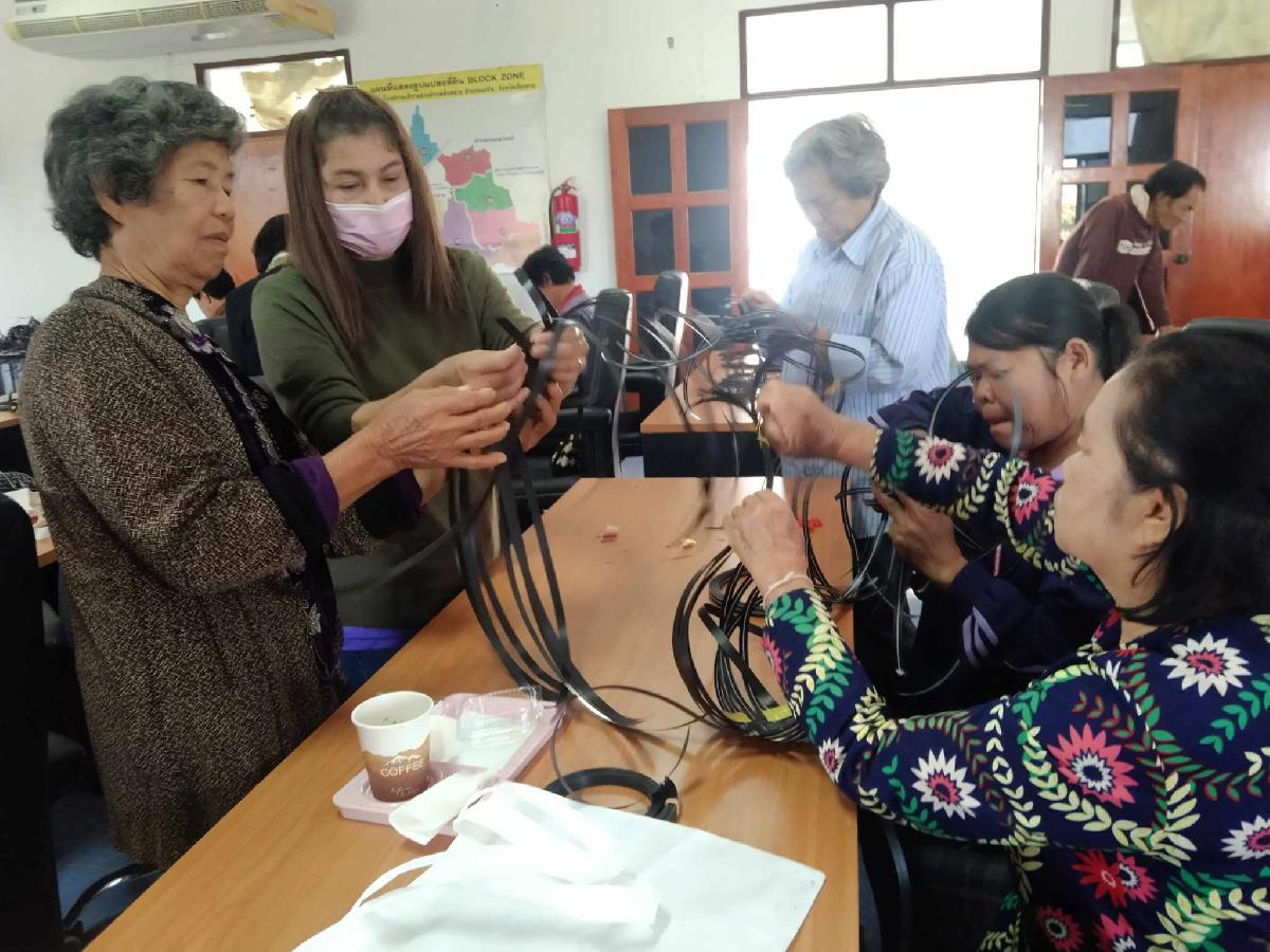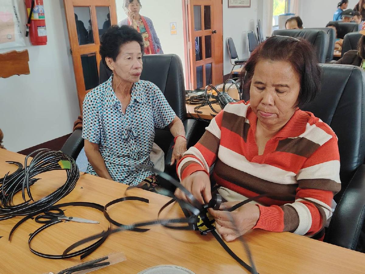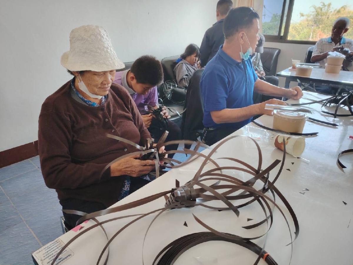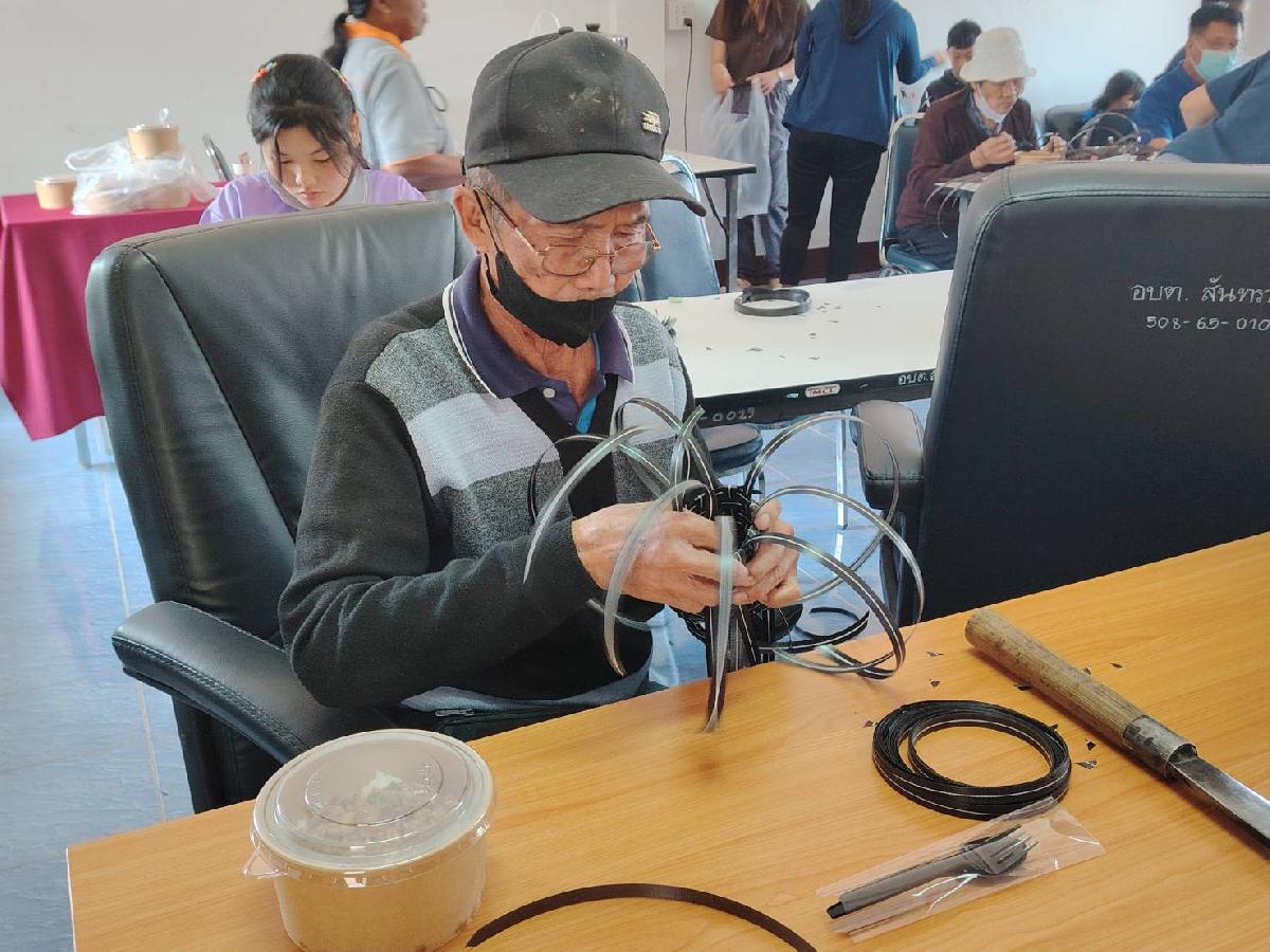 องค์การบริหารส่วนตำบลสันทรายได้ดำเนินการจัดโครงการฝึกอบรมและเพิ่มทักษะด้านอาชีพให้กับผู้สูงอายุตำบลสันทราย ประจำปีงบประมาณ พ.ศ. 2567 โดยมีกลุ่มเป้าหมาย ผู้สูงอายุ และประชาชนที่สนใจในตำบลสันทราย จำนวน 40 คน ฝึกทำผลิตภัณฑ์ถักสานปลอกมีดจากเส้นพลาสติกแข็ง ณ ห้องประชุมช อบต.สันทราย ในวันพฤหัสบดี ที่ 22 กุมภาพันธ์ 2567 โดยมีวัตถุประสงค์วัตถุประสงค์ เพื่อให้ผู้สูงอายุและประชาชนที่สนใจสามารถพัฒนาถักสานผลิตภัณฑ์จากเส้นพลาสติกได้ดีขึ้น การใช้เวลาว่างให้เป็นประโยชน์ และมีรายได้เสริม สร้างโอกาสทางเลือกในการประกอบอาชีพเป็นการเพิ่มรายได้และลดรายจ่ายในครัวเรือน