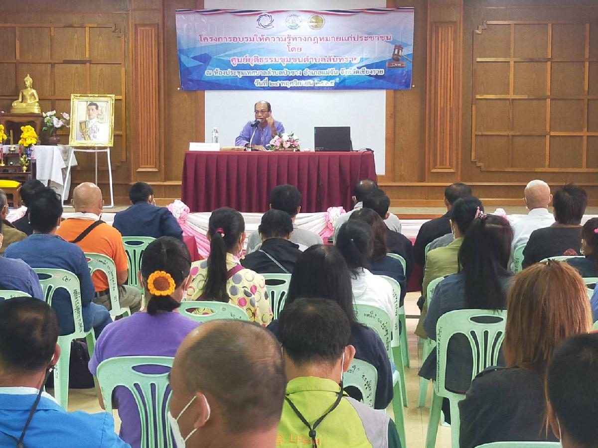องค์การบริหารส่วนตำบลสันทราย ในฐานะศูนย์ยุติธรรมชุมชนตำบลสันทราย ได้จัดโครงการให้ความรู้ทางกฎหมายแก่ประชาชน โดยมีกลุ่มเป้าหมายได้แก่ กำนัน ผุ้ใหญ่บ้าน ผู้ช่วยผู้ใหญ่บ้าน สมาชิกสภาองค์การบริหารส่วนตำบล และประชาชนในเขตพื้นที่ตำบลสันทราย จำนวน 100 คน ในวันที่ 24 พฤศจิกายน 2566 เพื่อให้ผู้นำและประชาชาชนได้นำความรู้ทางกฎหมายที่ได้ไปใช้ในชีวิตประจำวัน