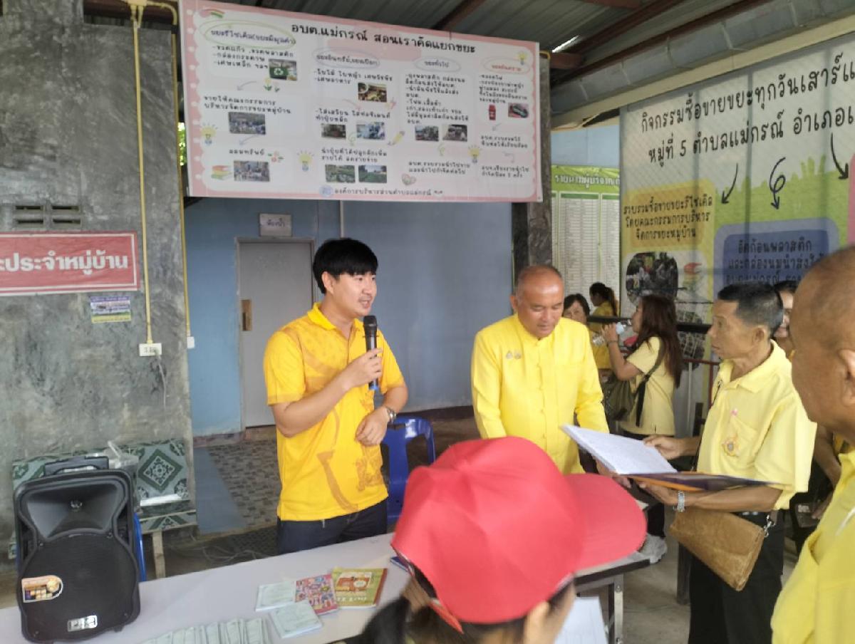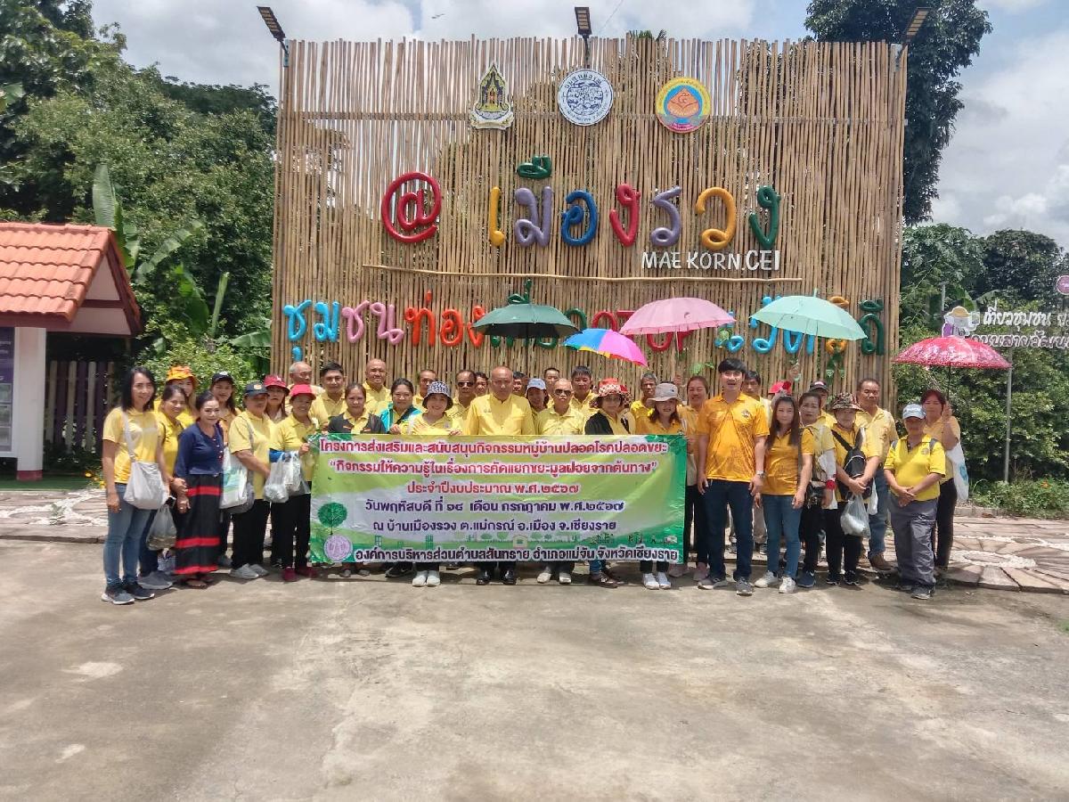 โครงการส่งเสริมและสนับสนุนกิจกรรมหมู่บ้านปลอดโรค ปลอดขยะ "กิจกรรมให้ความรู้ในเรื่องการคัดแยกขยะมูลฝอยจากต้นทาง" ประจำปีงบประมาณ พ.ศ.2567 ในวันพฤหัสบดี ที่ 18 เดือนกรกฎาคม พ.ศ.2567 ณ บ้านเมืองรวง ตำบลแม่กรณ์ อำเภอเมือง จังหวัดเชียงราย โดยมีคณะผู้บริหาร สมาชิกสภาองค์การบริหารส่วนตำบลสันทราย ผู้นำชุมชน คณะกรรมการหมู่บ้าน เข้าร่วมศึกษาดูงานการจัดการขยะมูลฝอยจากต้นทาง และธนาคารขยะจากชุมชนบ้านเมืองรวง