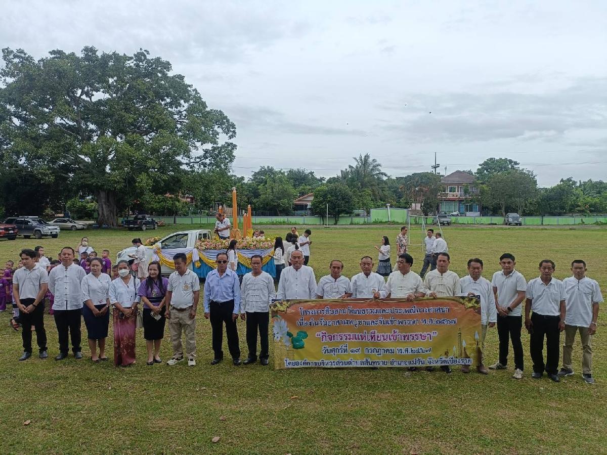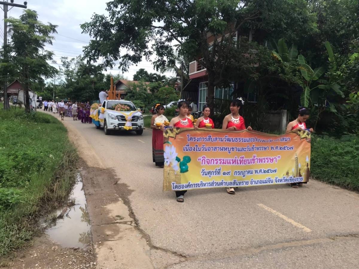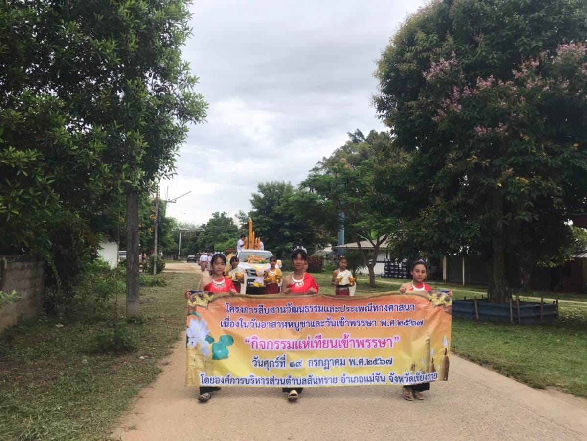 วันที่19 กรกฎาคม 2567 อบตสันทราย.นำโดยนายสงกราณเกเย็น นายกองค์การบริหารส่วนตำบลสันทราย ได้นำคณะผู้บริหาร/สมาชิกสภา พร้อมด้วยกำนัน/ผู้ใหญ่บ้านพนักงาน เจ้าหน้าที่ อบตสันทราย เด็กนร ศพด.และคณะครูร.ร.บ้านแหลว-นาล้อมร่วมสืบสานวัฒนธรรมและประเพณีทางศาสนา "กิจกรรมแห่เทียนเข้าพรรษา2567" โดยตั้งขบวนแห่เทียน ณ ร.ร. บ้านแหลว แล้วร่วมถวายเทียนที่วัดในเขตพื้นที่ อบต.สันทราย