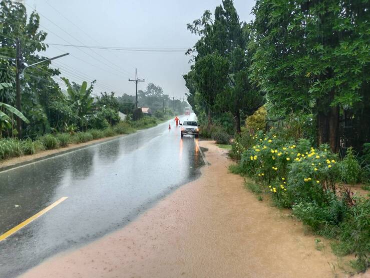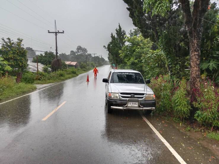 วันที่ 1 ตุลาคม 2567 งานป้องกันและบรรเทาสาธารณภัย ได้ลงพื้นที่สำรวจน้ำไหลหลากเเละได้วาง กรวยจราจร เพื่อเเสดงสัญลักษณ์ให้ลดความเร็วของรถยนต์ที่สัญจรผ่านถนน บริเวณหมู่ที่ 2 บ้านจอมจันทร์