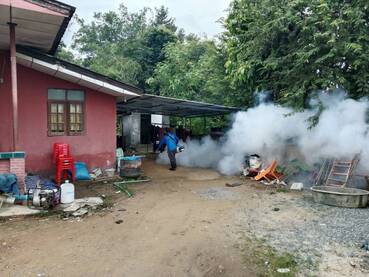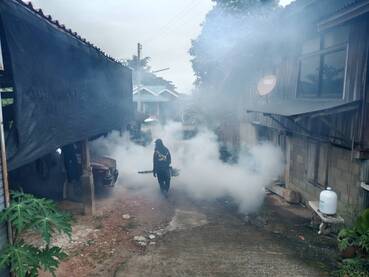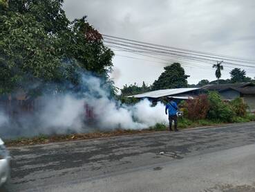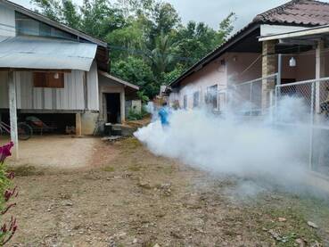 พ่นหมอกควันควบคุมโรคไข้เลือดออก ครั้งที่ 3 หมู่ที่ 6 บ้านแหลว